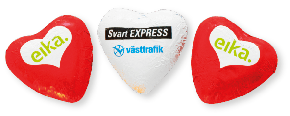 Suklaapalat,käärinpaperiin voidaan painaa haluamanne offset-painatus. Valitse hopea tai kultafolio suklaan ympärille.