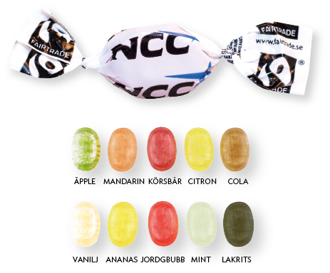 Maut: kerma, suklaa, lakritsa, vadelma, päärynä, meloni, suklaaminttu, sitruunalakritsa, minttu, vadelmalakritsa, mansikka ja piparkakku.